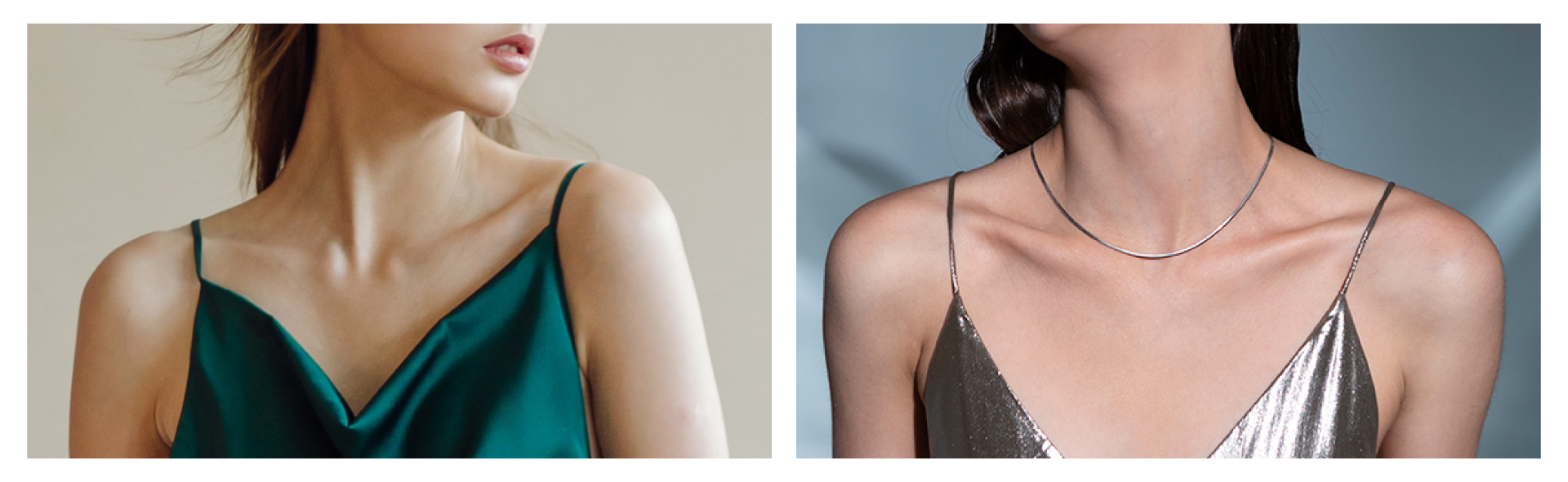 脖子與肩膀連接處線條平坦,鎖骨清晰可見,頸部視覺修長 |