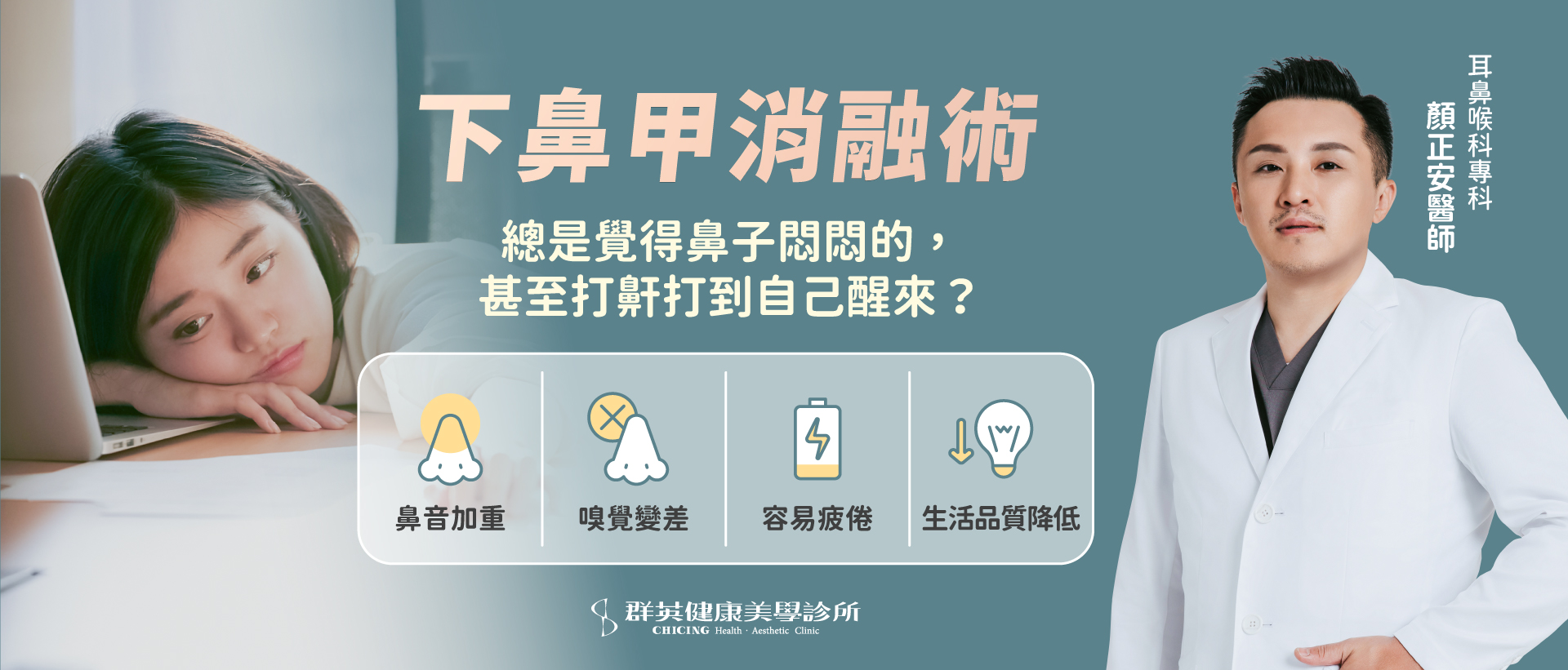 就可能出現肥厚腫脹,導致鼻腔變窄、空氣流通受限,進而出現慢性鼻塞、鼻音加重、嗅覺變差,嚴重影響睡眠與生活品質。