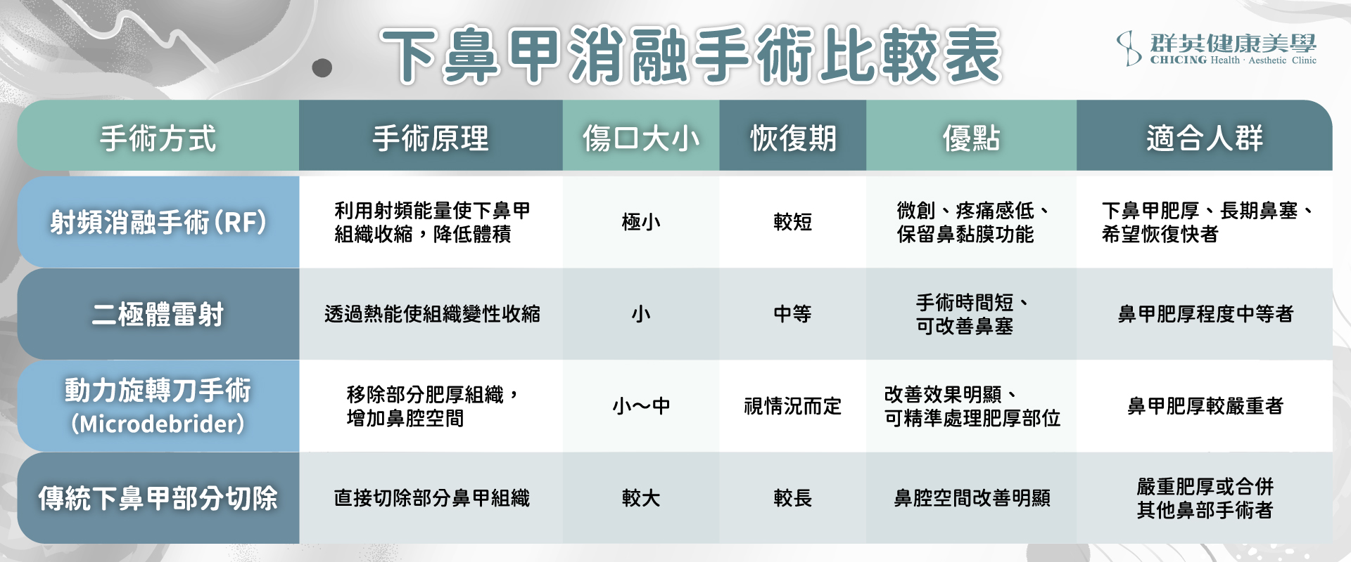 下鼻甲消融術可長時間改善鼻塞,但若過敏原持續存在或控制不佳,仍有機會隨時間再度肥厚,需定期追蹤,再根據狀況選擇再次治療或搭配後鼻神經阻斷術改善鼻塞問題。