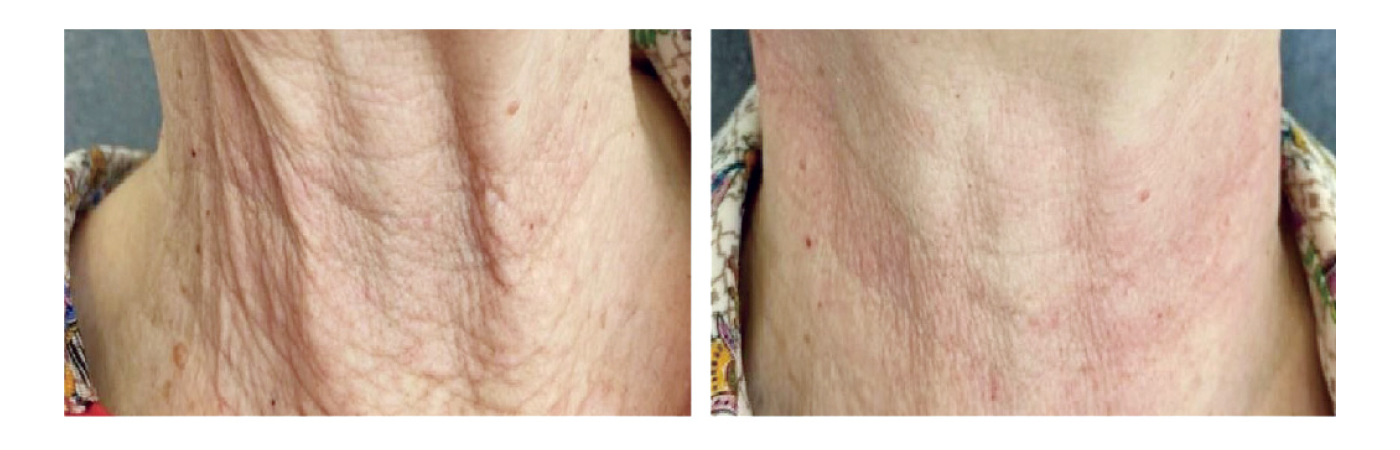 術後 1–2 週可見肌膚較水潤,約 1 個月後膠原生成明顯,膚質逐漸變得細緻緊緻。