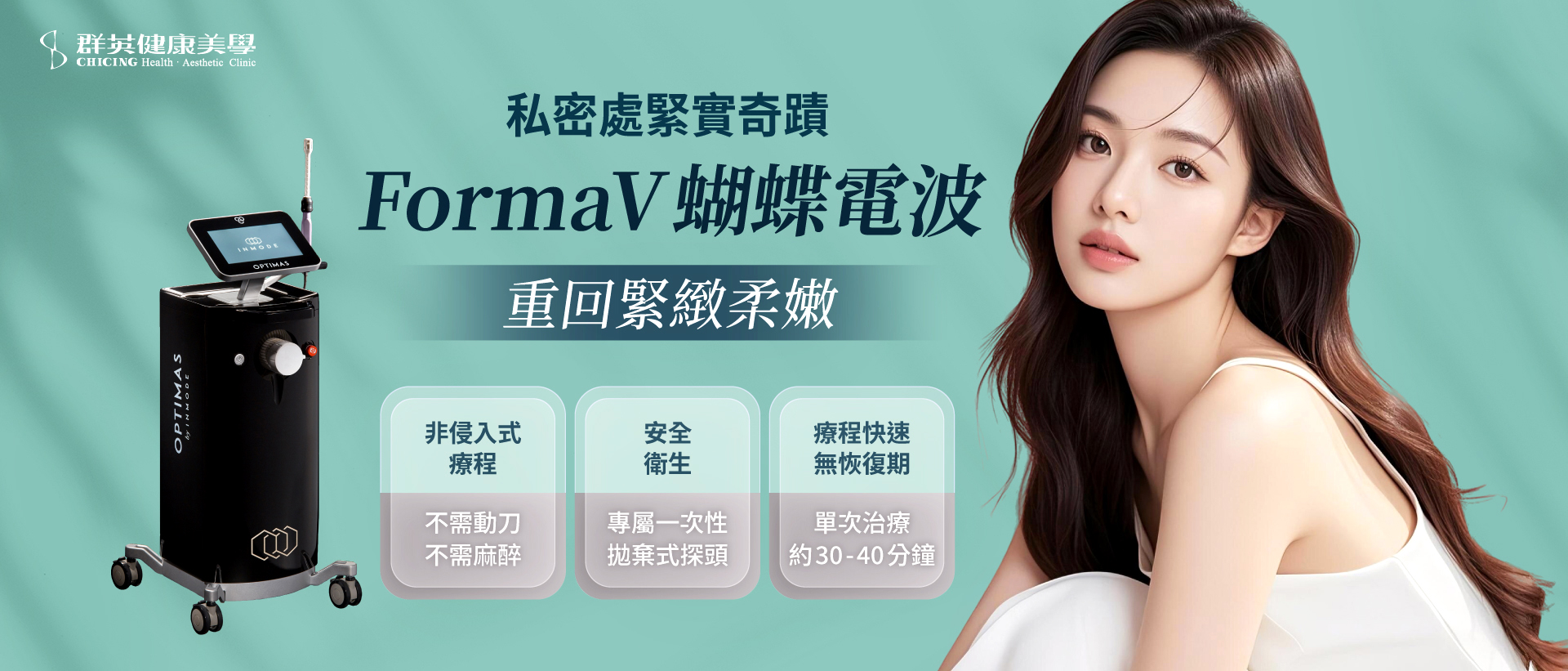 整個療程約 30-40 分鐘,採仰躺姿勢進行,過程中會感受到溫熱但不會燙的感覺,無需麻醉也無需休息時間,治療後即可如常上下班、約會、甚至運動。大多數人於 2 週內開始感受到,緊實度、潤滑度有明顯改善,完整療程可依照醫師評估安排 1~3 次治療,效果持續半年以上。